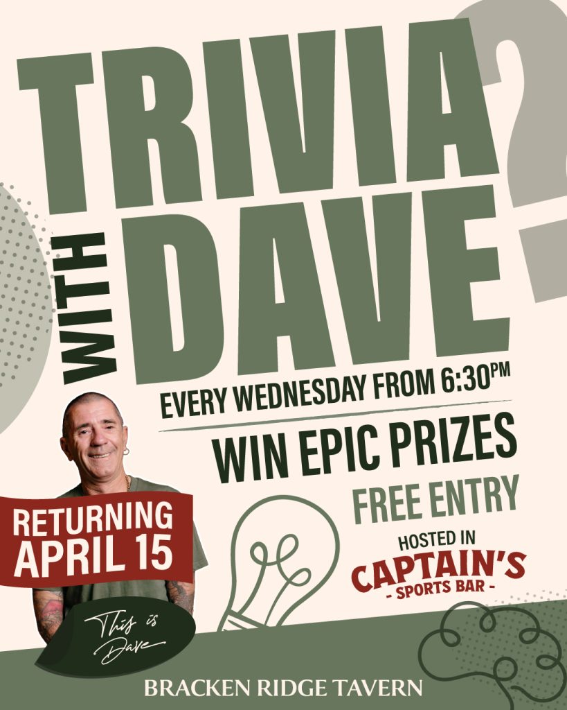 Join us for a night of brain-teasing fun at “Trivia with Dave” every Wednesday, from 6:30pm in Captain’s Sports Bar!